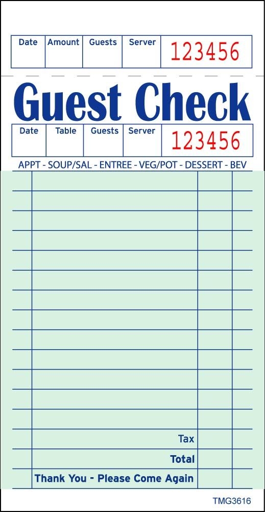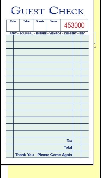 Free Printable Guest Check Template