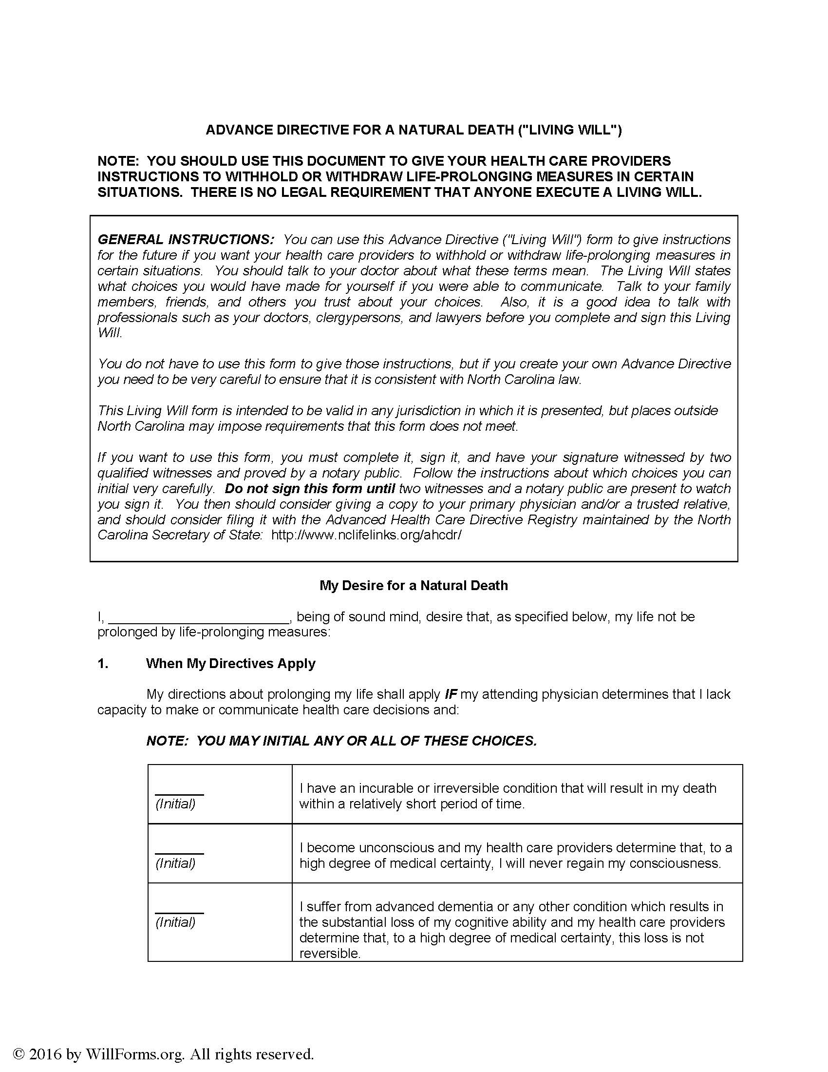 Free Printable Nc Last Will And Testament Form