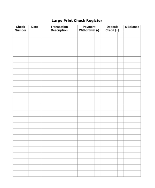 Large Print Check Register Printable Pdf Free Download