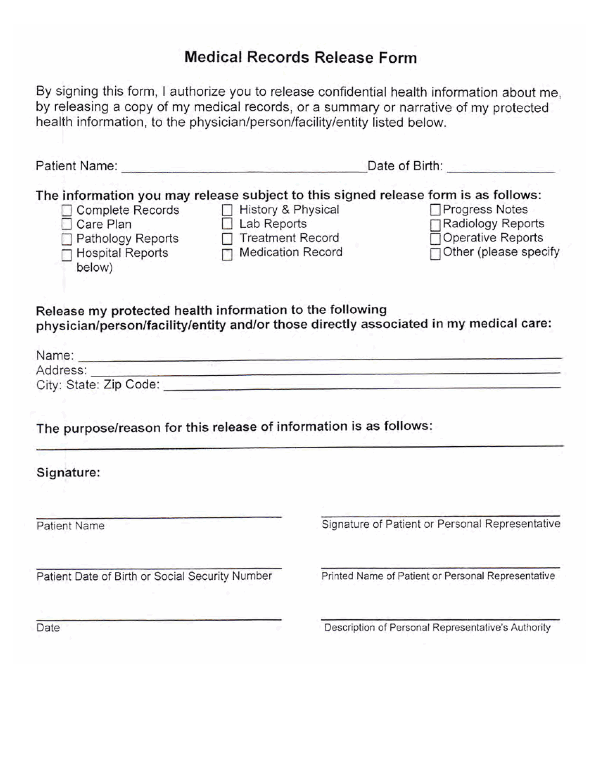 Overall, printable blank medical records release forms are a convenient and easy-to-use tool for authorizing the release of your medical information. By having a form on hand, you can ensure that your records are accessible when you need them and that your privacy and confidentiality are protected throughout the process.