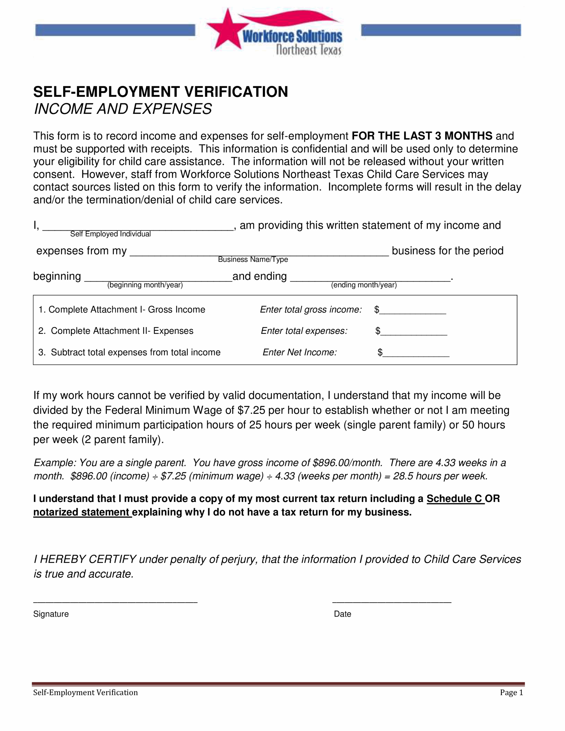 Printable Child Care Income Verification Form