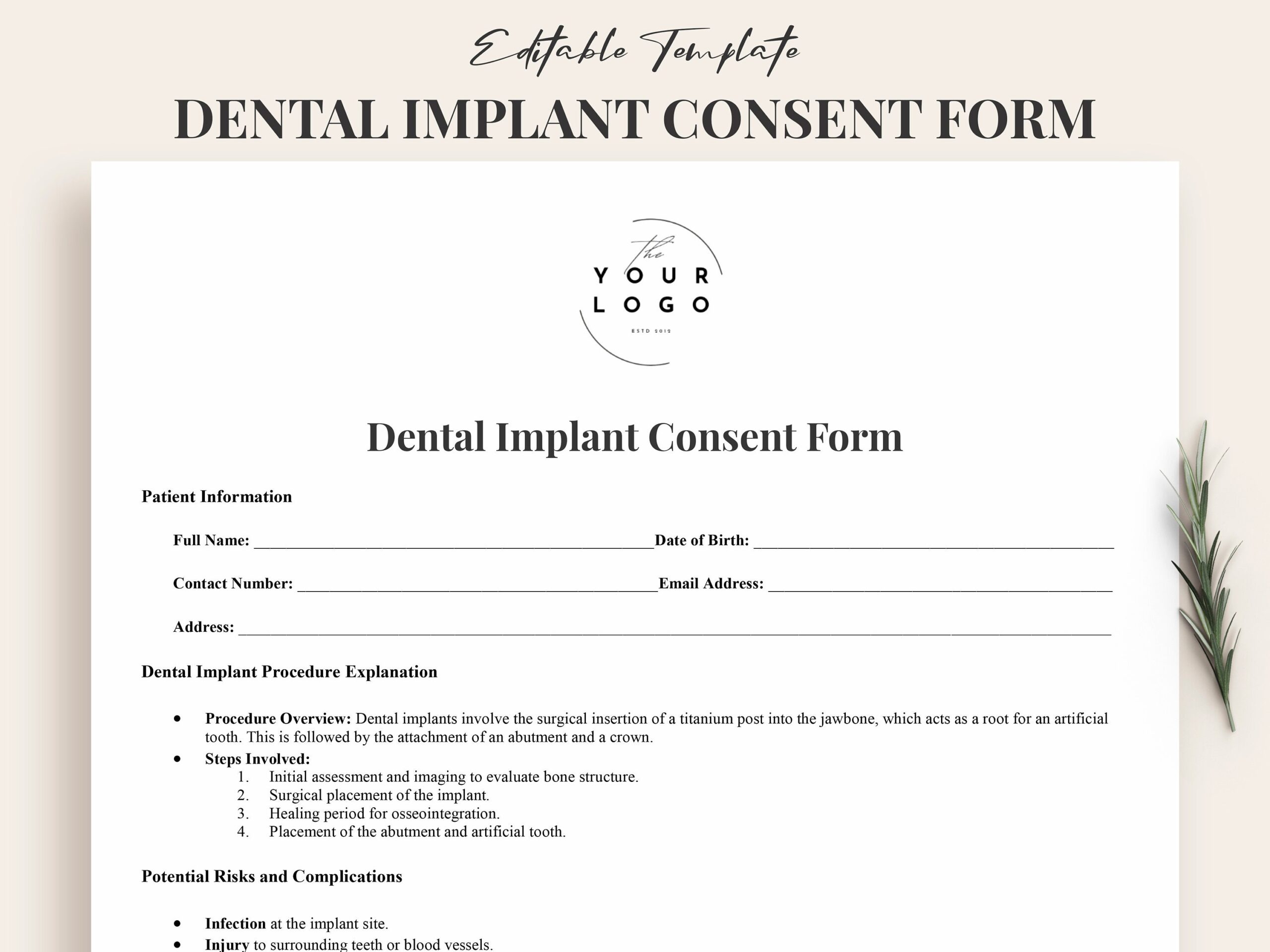 Dental Implant Consent Form Template PDF Printable Patient Agreement Oral Surgery Document Customizable Dental Office Forms Word EtsyDental Implant Consent Form Template PDF Printable Patient Agreement Oral Surgery Document Customizable Dental Office Forms Word Etsy