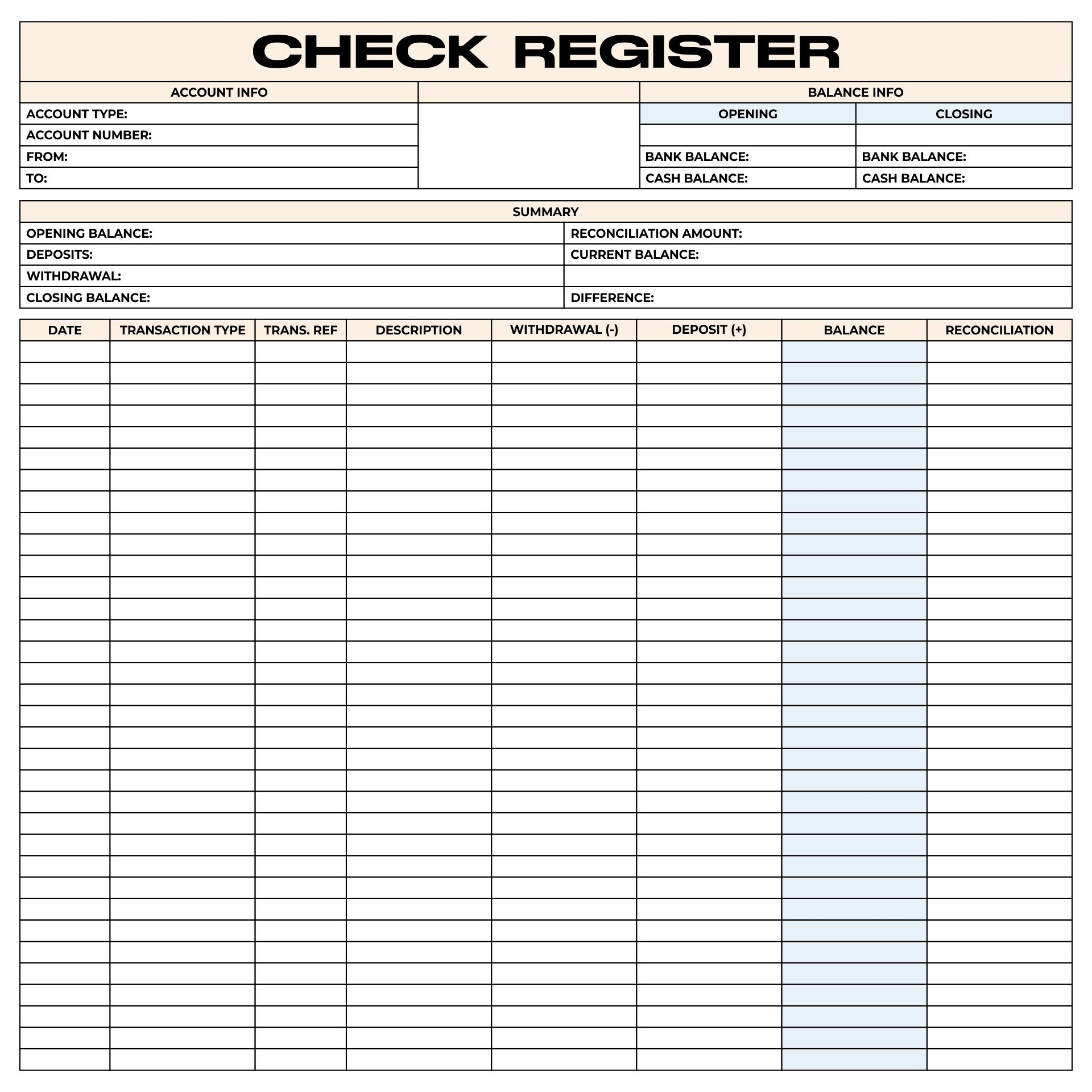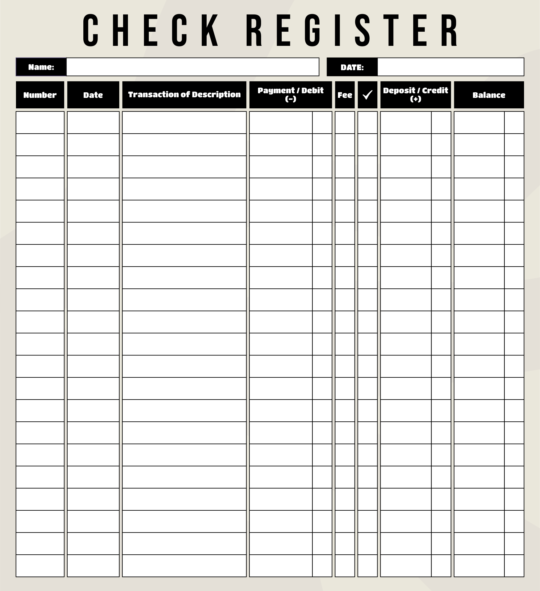 Keeping track of your finances is essential for managing your budget effectively. One useful tool to help you stay organized is a check register. A check register is a document used to record all transactions, including checks written, deposits made, and any other withdrawals or payments. By keeping an accurate record of your finances, you can avoid overdraft fees, track your spending, and ensure that you have enough funds to cover your expenses.