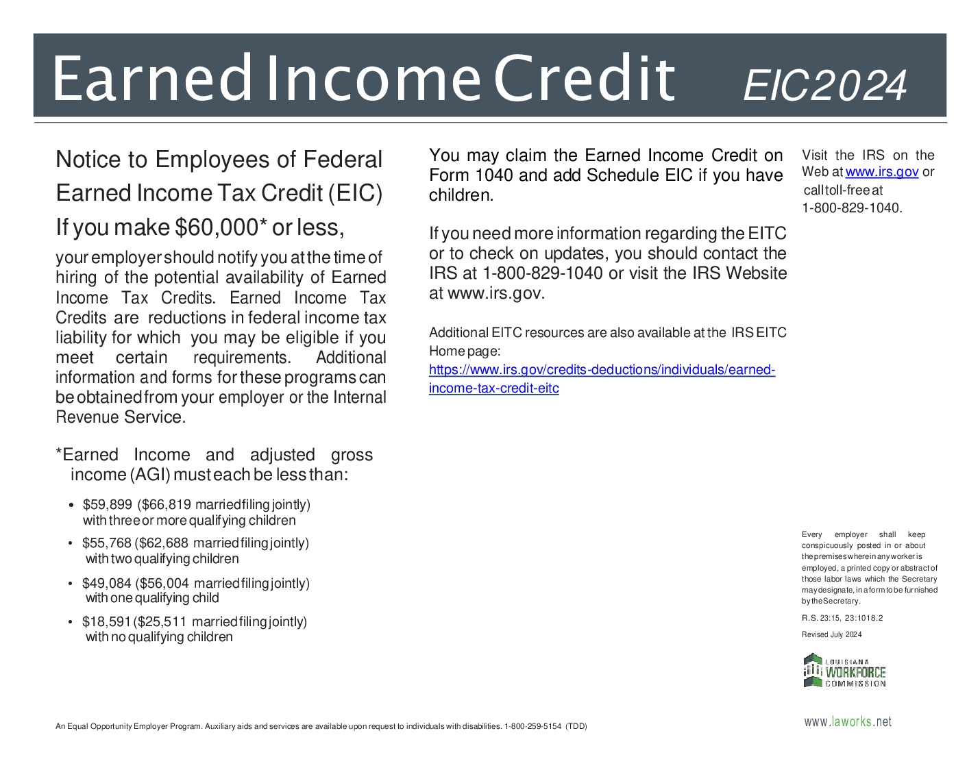 Free Louisiana Louisiana EIC Labor Law Poster 2025Free Louisiana Louisiana EIC Labor Law Poster 2025