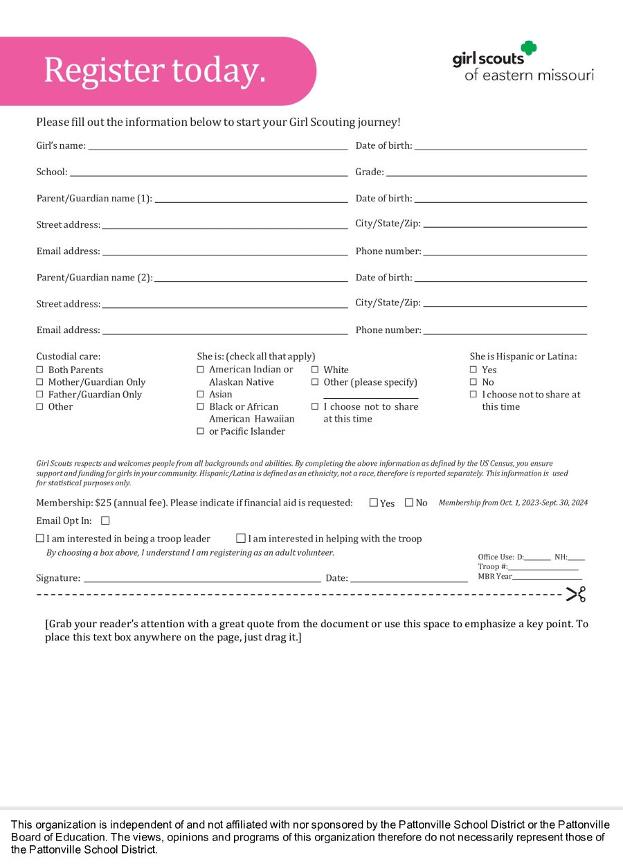 Printable Girl Scout Registration Form