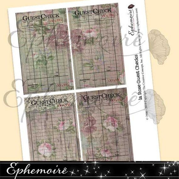 Printable GUEST CHECKS Pink Roses Rose Guest Check Printable Ephemera Printable GUEST CHECKS Pink Roses Rose Guest Check Printable Ephemera