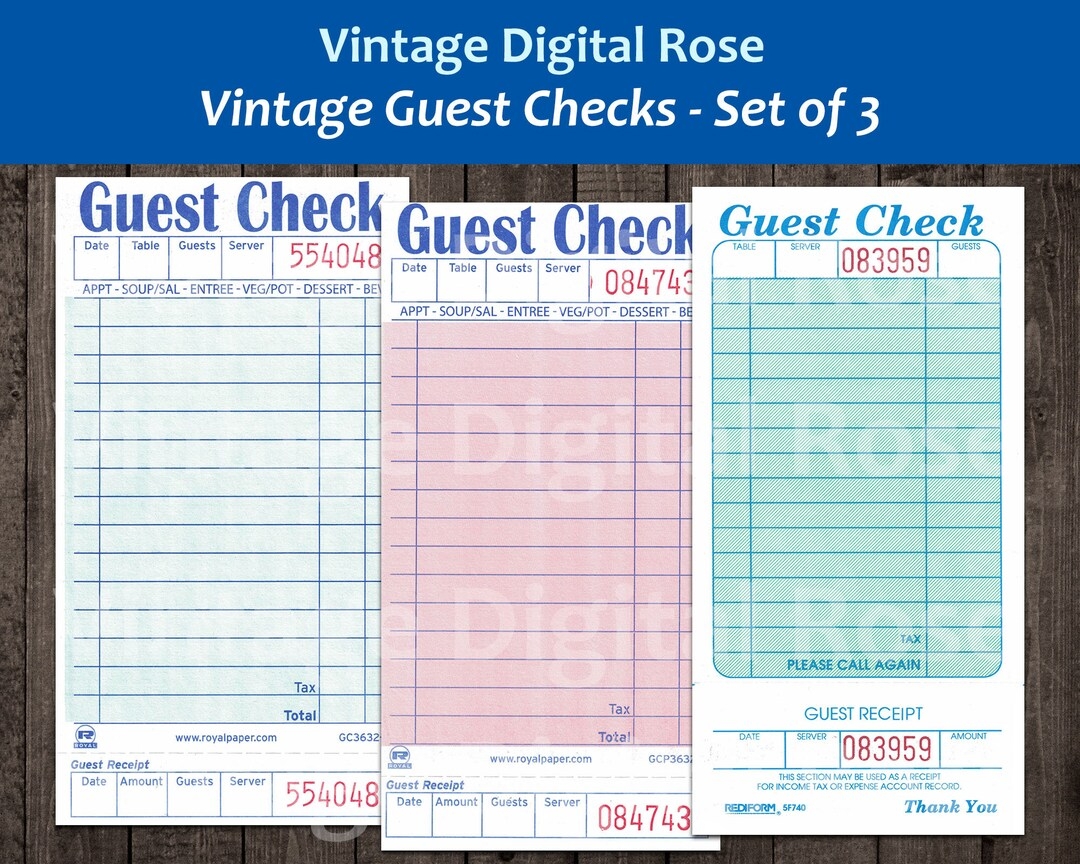 Vintage Printable Guest Checks Blank Unused Receipts Set Of 3 Three Printable Guest Checks