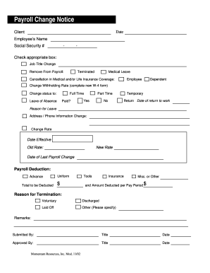 Printable Payroll Status Change FormPrintable Payroll Status Change Form
