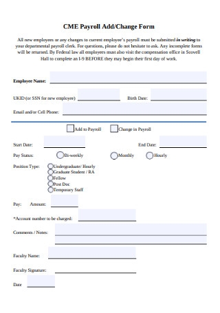 Printable Payroll Change Form