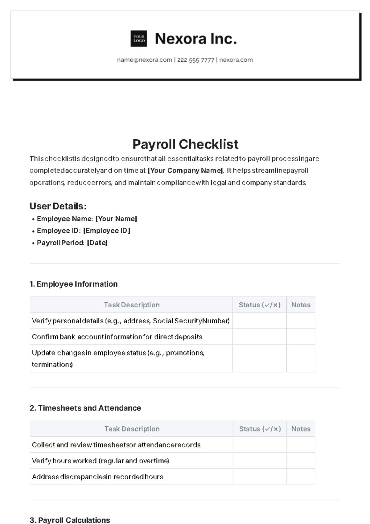 Free Payroll Checklist Template To Edit OnlineFree Payroll Checklist Template To Edit Online
