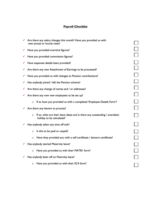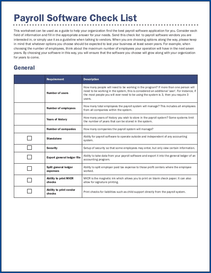 Free Printable Payroll Checklist Template Checklist TemplatesPrintable Payroll Checklist Template