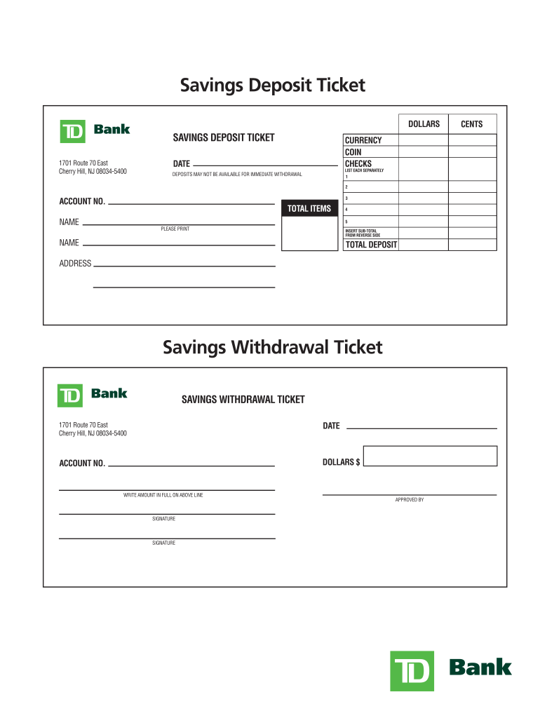 Printable Td Bank Checking Deposit Slip