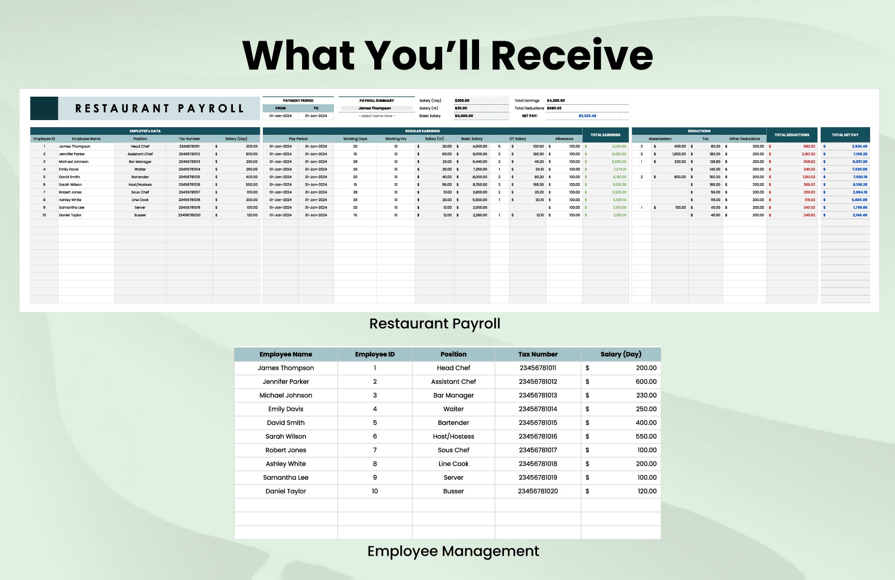 Printable Weekly Restaurant Payroll Template