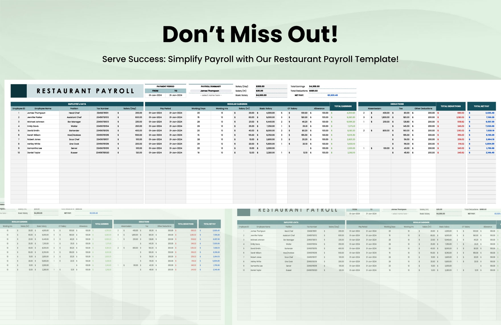 Overall, utilizing a printable weekly restaurant payroll template can greatly benefit restaurant owners in managing their payroll more effectively. By providing a structured format for recording employee information and streamlining the payroll process, these templates can help ensure accurate and timely payment for all employees.