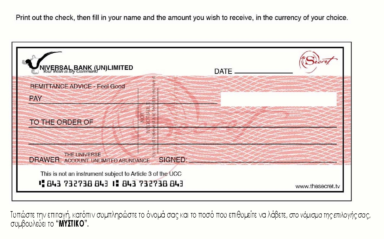 Using The Secret Check Printable is easy. Simply write down the amount of money you want to manifest, the date, and your name. Then, place the check in a visible location where you will see it every day. By consistently focusing on your desires and believing that they will come true, you can harness the power of the law of attraction to bring them into your life.